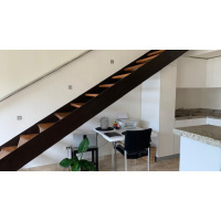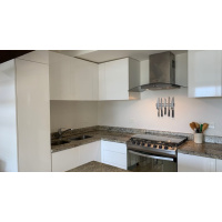 EQUIPPED WITH REFRIGERATOR, GAS STOVE WITH GLASS TOP, HOOD AND BREAKFAST BAR WITH